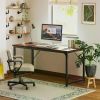 • [SIMPLE DESK ]Enjoy simple yet spacious work space with this sleek black desk, measuring 63''x23.6''x29.5'', is the perfect solution for your study, kid's room, or home office. With ample storage, it accommodates your computer, calendar, lamp, and other essentials, leaving enough room to enjoy a cup of coffee