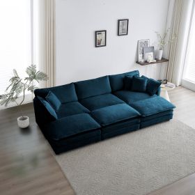 Free Combination Comfy Upholstery Modular Oversized L Shaped Sectional Sofa With Reversible Ottoman, Blue Chenille